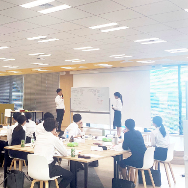 Workshop業務体感ワークショップ芙蓉リースグループとしての商材の幅広さを体感いただける「ソリューション提案」「事業立案」の2種類のワークを実施します。グループワーク後は社員からの具体的なフィードバックも行います。