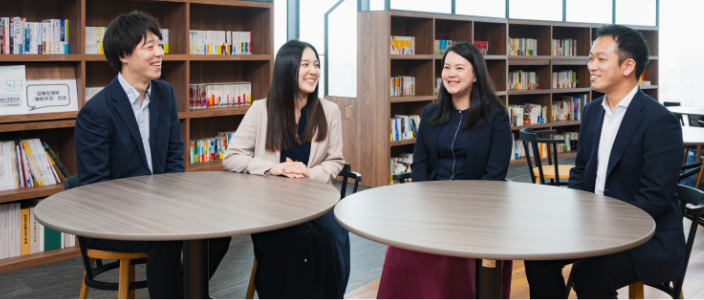 社員が集い、日々の仕事や社内文化、キャリアについて率直な言葉を交わす座談会。 若手・中堅の同期が集い、生の会話で伝える芙蓉リースのリアルな環境をぜひご覧ください。