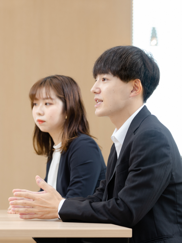 小澤私も皆さんと同様、社員の方々の人柄に惹かれたことが決め手となりました。就活中の私のつたない質問にも丁寧に答えてくださり、こうした温かい人たちに囲まれて伸び伸びと仕事をすることで、自分も成長できると感じました。実際に入社して、職場の居心地のよさを改めて感じています。