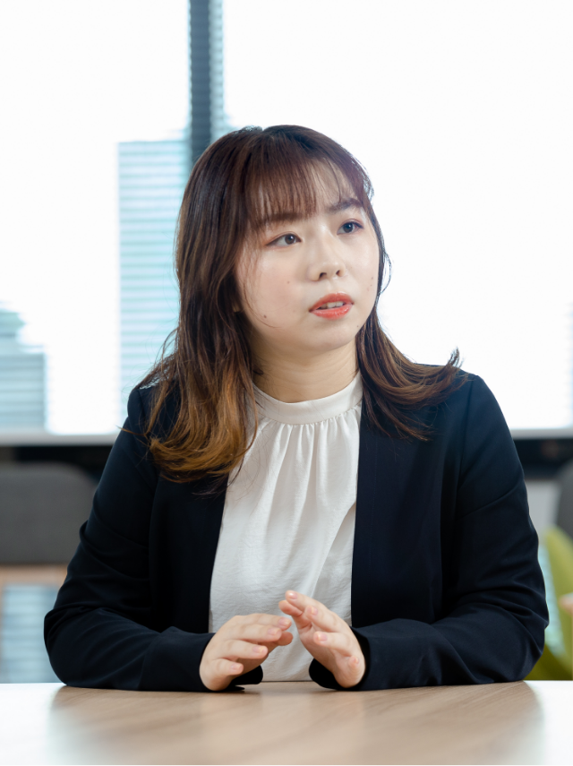 張私は日本の大学院で学ぶために中国から来日しました。もともと金融業界を志望しており、学生時代にインターンシップを経験したことがリース会社を志望するきっかけになりました。芙蓉リースに入社したのは、穏やかな社風と社員の温かい人柄に触れたことが理由です。面接の際もとても親切に対応してくださり、このような社員の方々と一緒に働きたいと思いました。