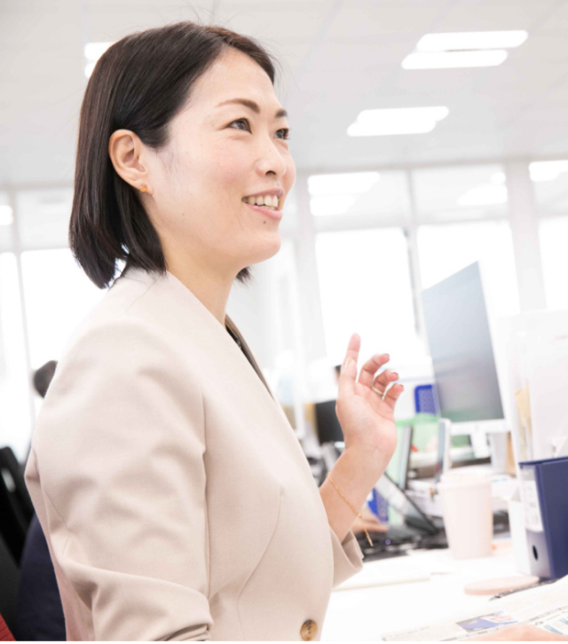 厚東私は、自身で希望するポストを選びチャレンジできる「ジョブ公募制度」を使って、東京営業第一部から不動産の専門営業部に異動しました。不動産も変化が激しい分野なので、時代やお客様のニーズに合わせた新しい仕組みを提案できないか、常日頃考えています。