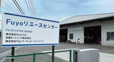 2024年度、グループ各社に返却されるリース物件や顧客企業より買い取った中古資産の保管場所を「Fuyoリユースセンター」に集約しました。グループ3社(FUJITA、芙蓉オートリース、FGLサーキュラー・ネットワーク)が合同で運営しております。当センターは整備ヤードとしての機能を備え、従前より製品価値の向上を図ることが可能となりました。今後は取扱物件の範囲を広げ、市場に流通するリユース物件を増やすことで製品寿命の長期化に貢献してまいります。